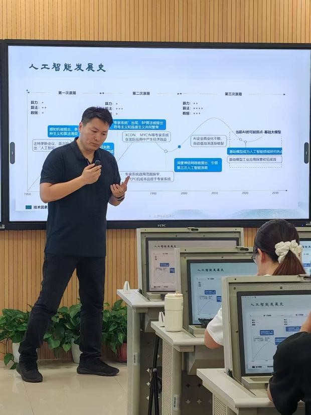 活动全程围绕“人工智能发展脉络、大模型核心原理、AI 在人文社科领域的应用路径及局限”展开,既涵盖宏观的 AI 技术演进(如人工智能“三起三落”发展历程、1950年概念提出以来的关键算法突破),也深入解析大模型的本质(大规模预训练语言模型的多模态能力、基于数据概率分布的学习逻辑),同时结合民族学、社会学、管理学等人文社科细分领域的实际研究案例,具象化呈现 AI 技术如何解决社科研究中的数据处理、知识抽取、理论验证等核心问题,为在场师生提供了“技术落地学术”的清晰参考框架。